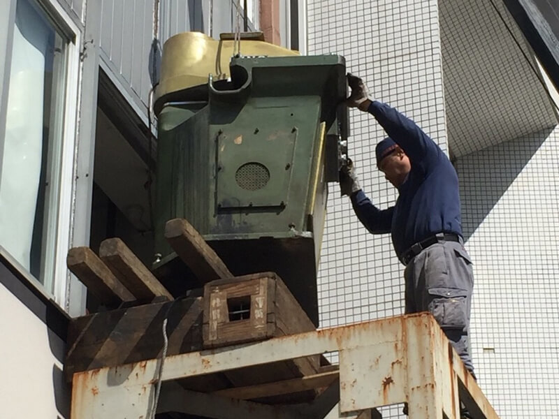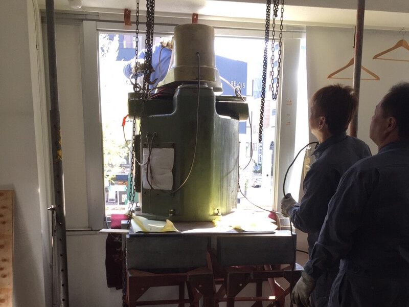 何トンもある重機は2Fの窓から・・・。