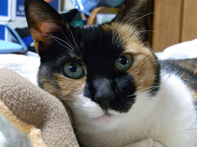 三毛猫のメイ(8才・メス)との3人?暮らしです。