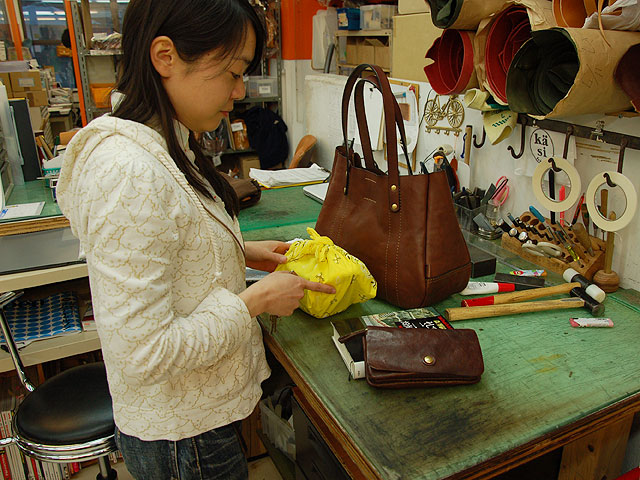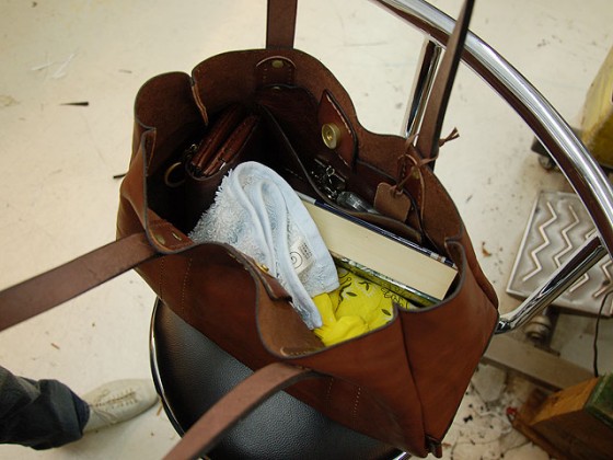 (※革鞄に水気のあるものを入れる場合は、十分お気を付け下さい。)