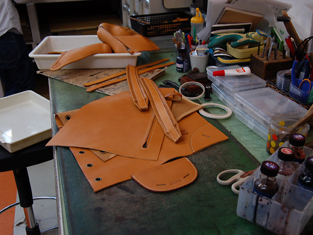 ファクトリーショップ担当で作り手のナメカワ君の製作机です。