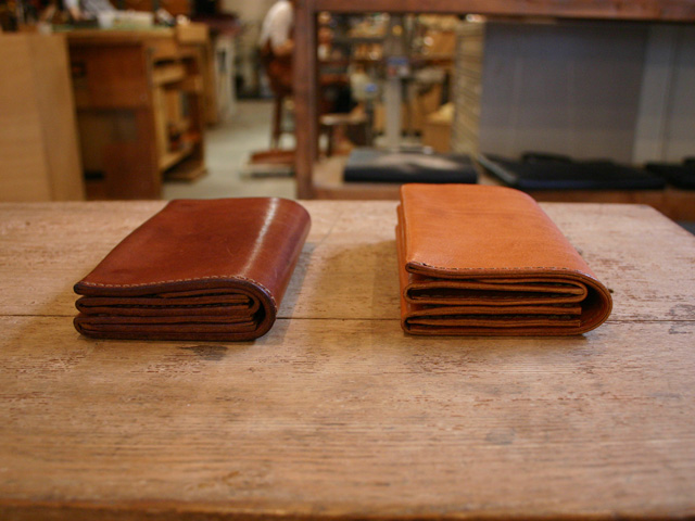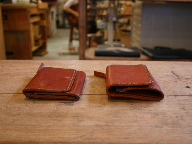 今日はそんなエイジングサンプルの小物たちをご紹介。どちらが使い込んだものでしょう。