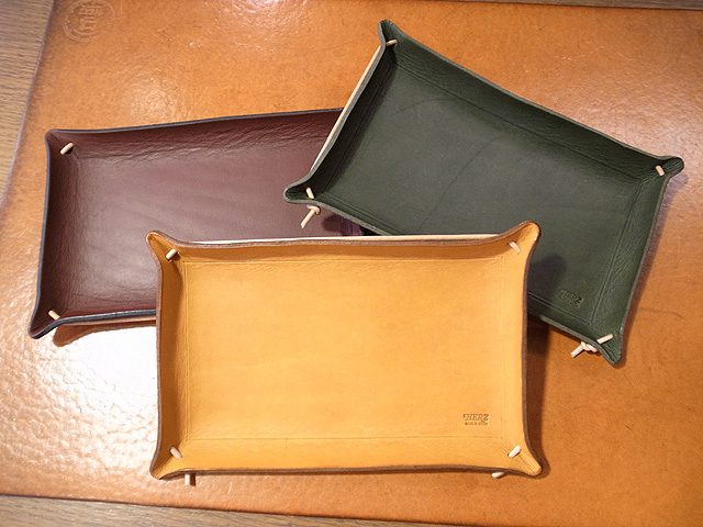 合わせて革のトレイも作りました。