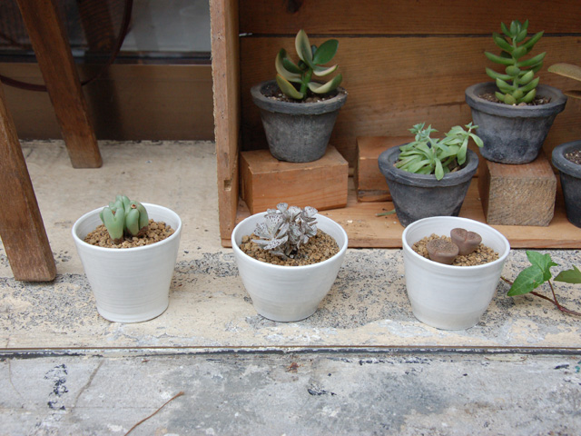 こちらは以前、新入りだった多肉たち。噂通り、本当に桃井作の器で登場。