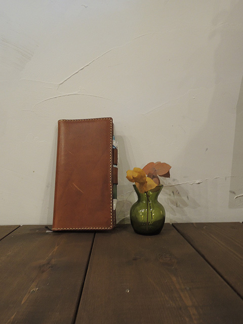 素材は定番のキャメルより少~し白っぽい色の革を使っています。