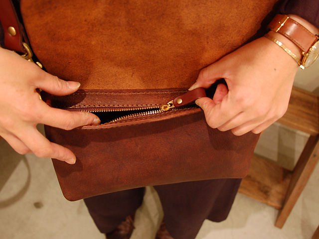 短めに背負いたいけれど厚手のお洋服になるこの時節はとても重宝します。にくい演出です。