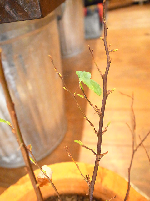 葉が落ちてもうダメかと思いきや、よく見ると新芽が出てきています。