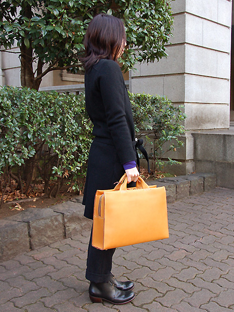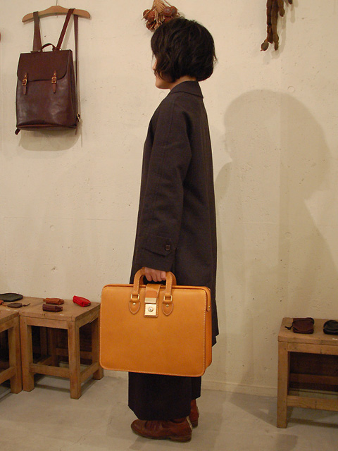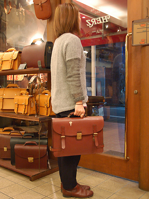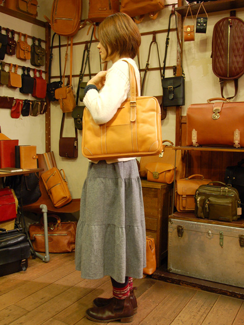 武骨で厚い青山本店の革鞄も、実は女子に似合うかも?というこのコーナー。