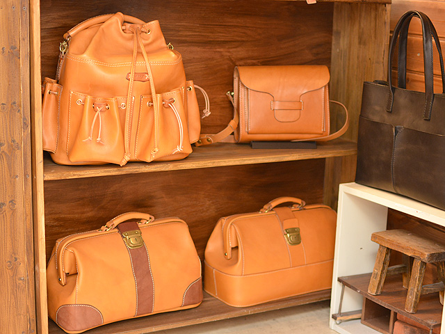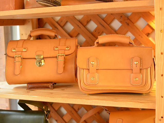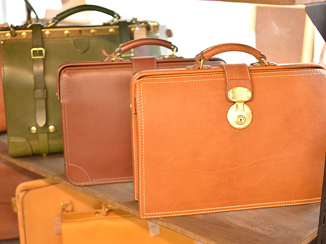 前にもブログでも紹介した独特な存在感を放つ革鞄(左上)と旅モノのサンプルボストンバッグもありますよ