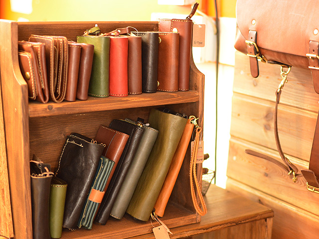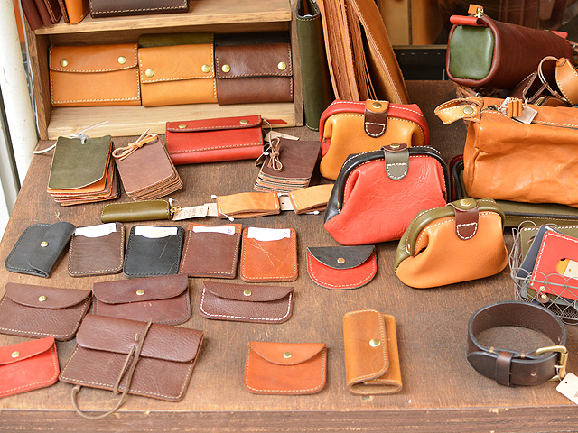 工房前でひっそりと展開中のシンプルなカードケースやポーチたち