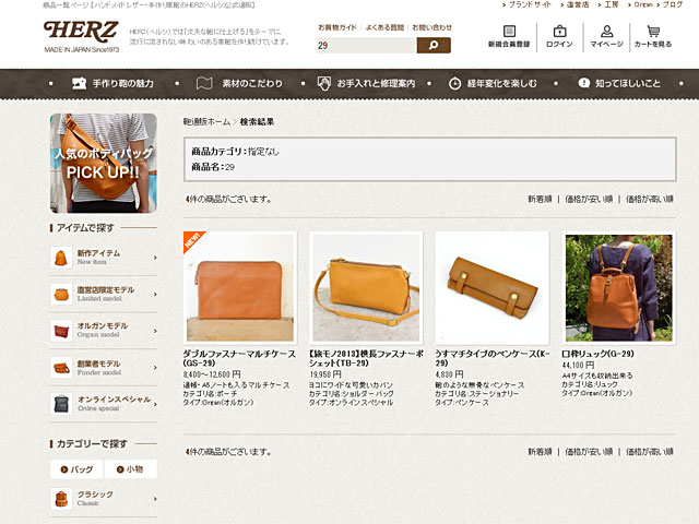 先日何気にオンラインショップのフリー検索に「29」と