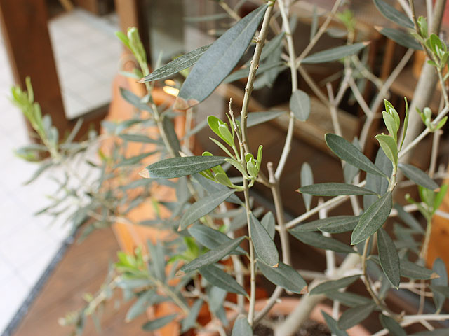 店先の骨組みの様なオリーブも新芽が出て少しフサフサしてきました。