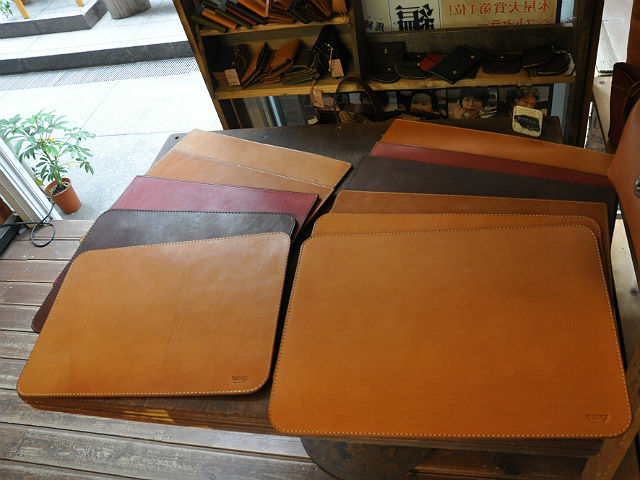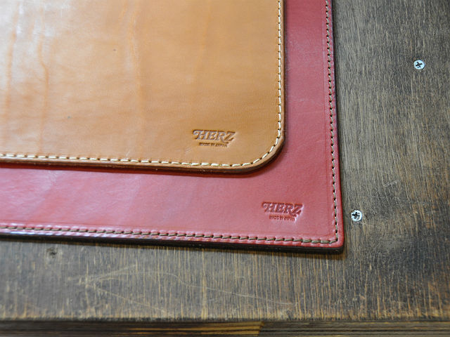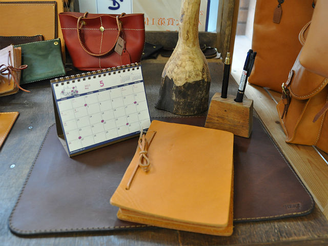 FACTORY SHOP のデスクマットはかなり個性的で革の表情が豊かです。
