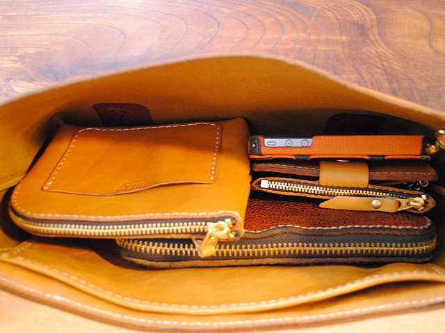 中にはお財布、携帯、キーケース(Y-130-N)、ポーチ(K-114-S)を入れてみました。