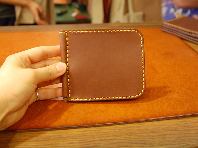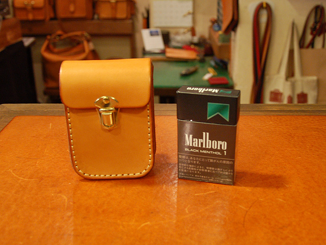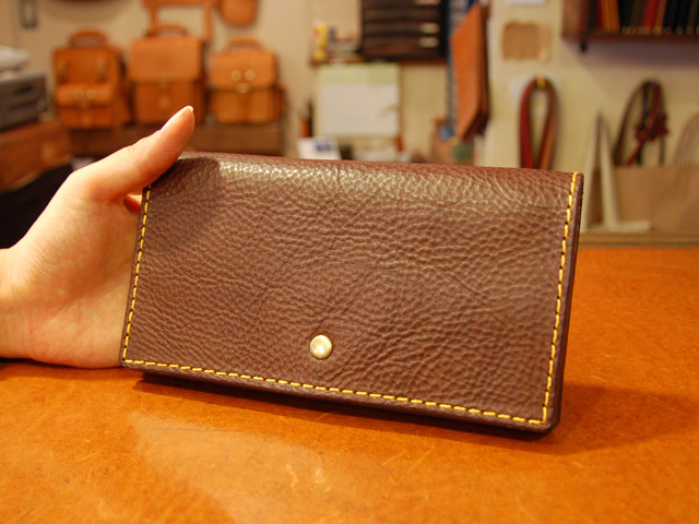 わたくし、チョコ革に黄色の糸という組み合わせが好きでして、今回何点か作ってもらいました。