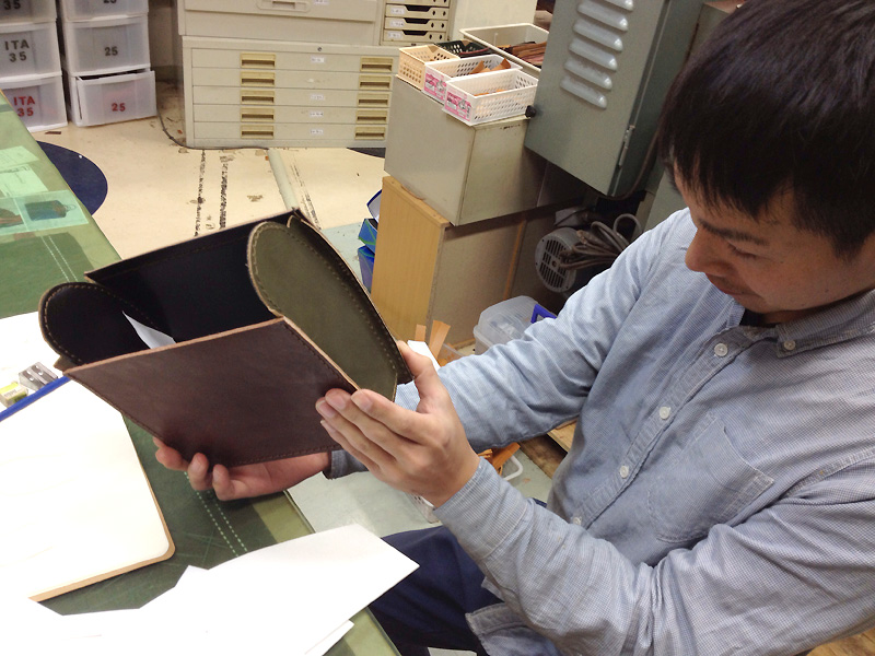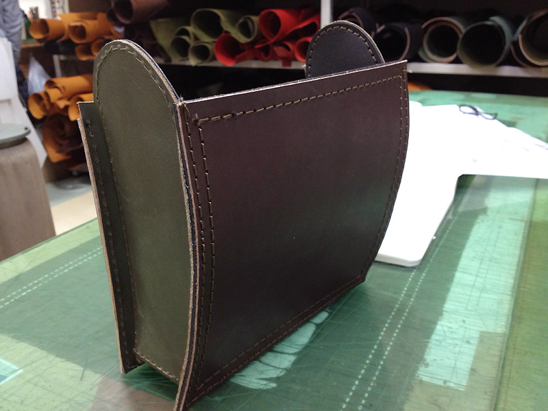 革の素材、艶を引き出すために本体の前面を曲線で仕上げました。