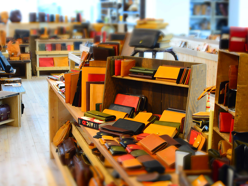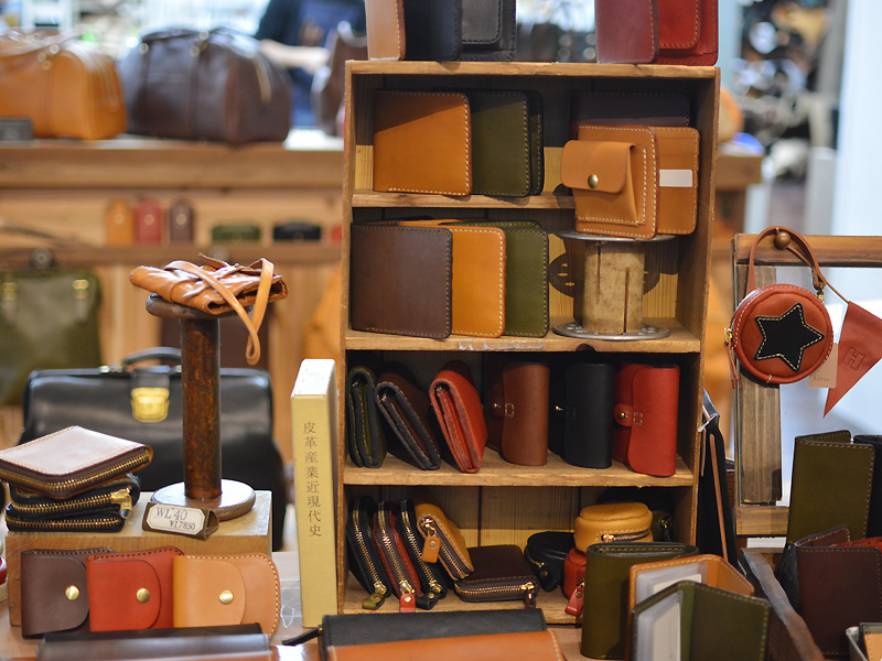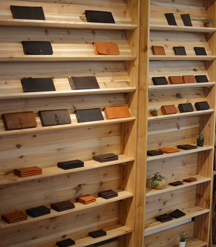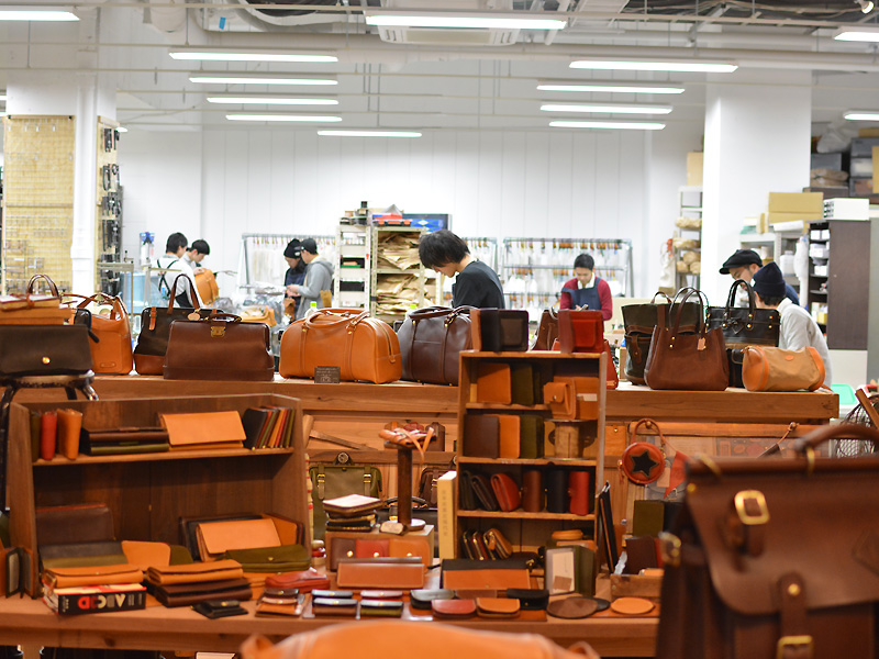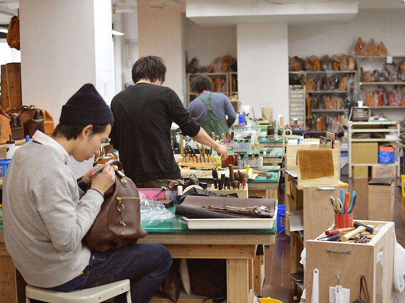 お店の奥の工房では、今日も作り手が鞄作りに励んでいます。
