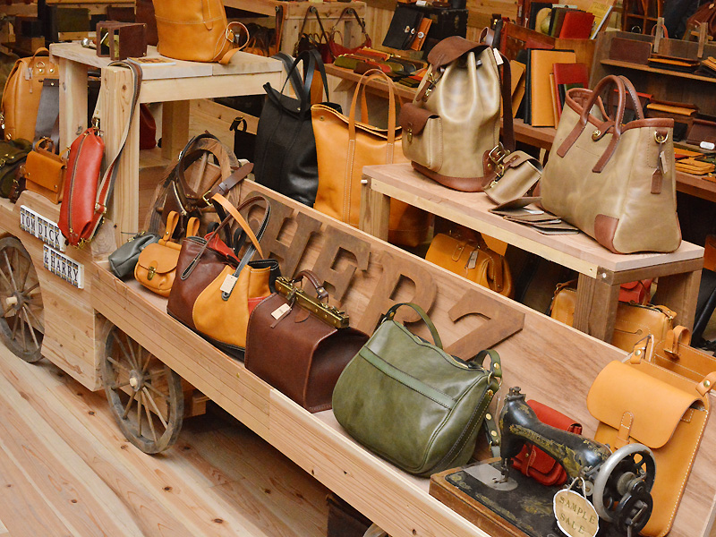新しいHERZ本店では、定番品の鞄や小物たちはもちろん、