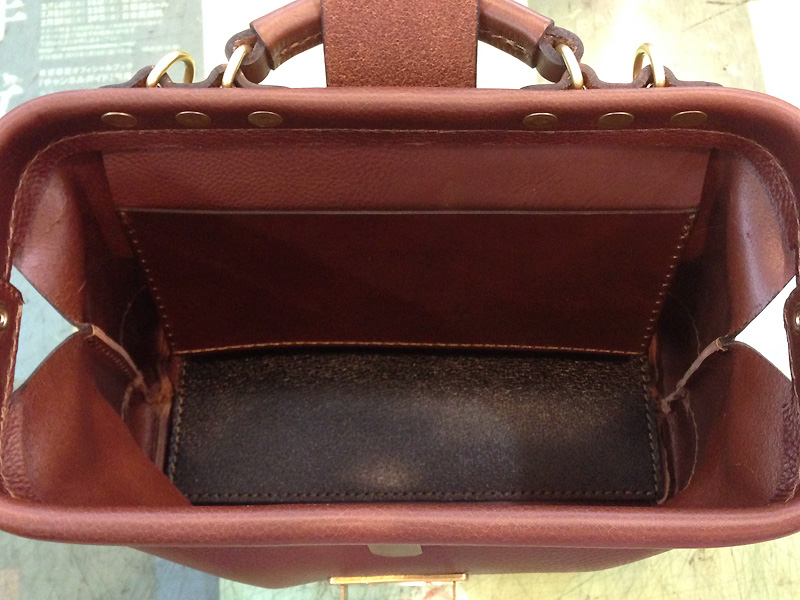 標準で底板も入っているので物を入れても鞄の型崩れもあまりしませんし、底鋲も標準装備でしっかり自立します。