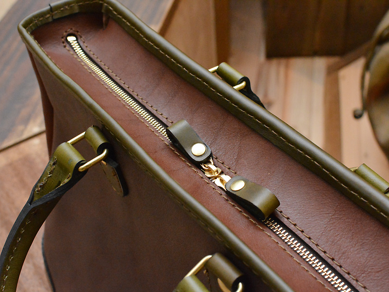 同じ革ですが、表と裏で色味が違うので、実質3トーンのような仕上がりに。