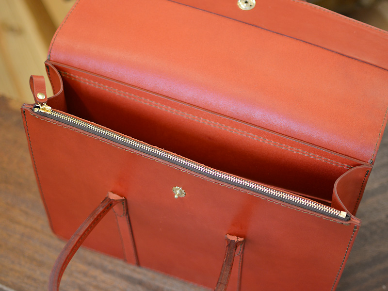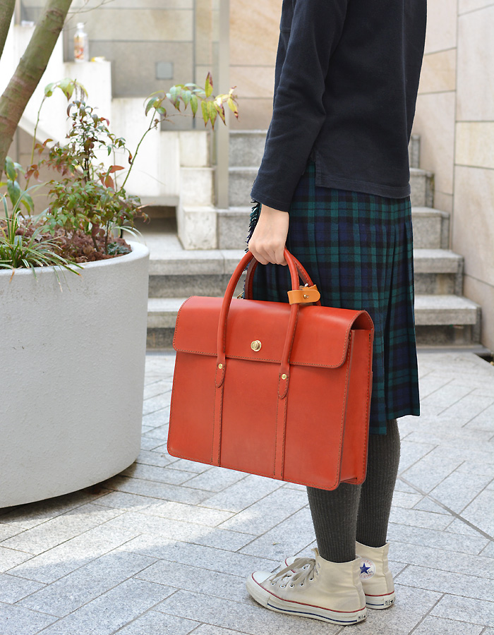 かぶせとドイツホックがポイントのビジネストート。クラシックな雰囲気を感じます。