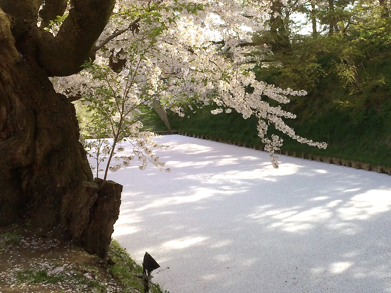 このお堀に浮かぶ桜の花びらを『花いかだ』と呼ぶそうです。