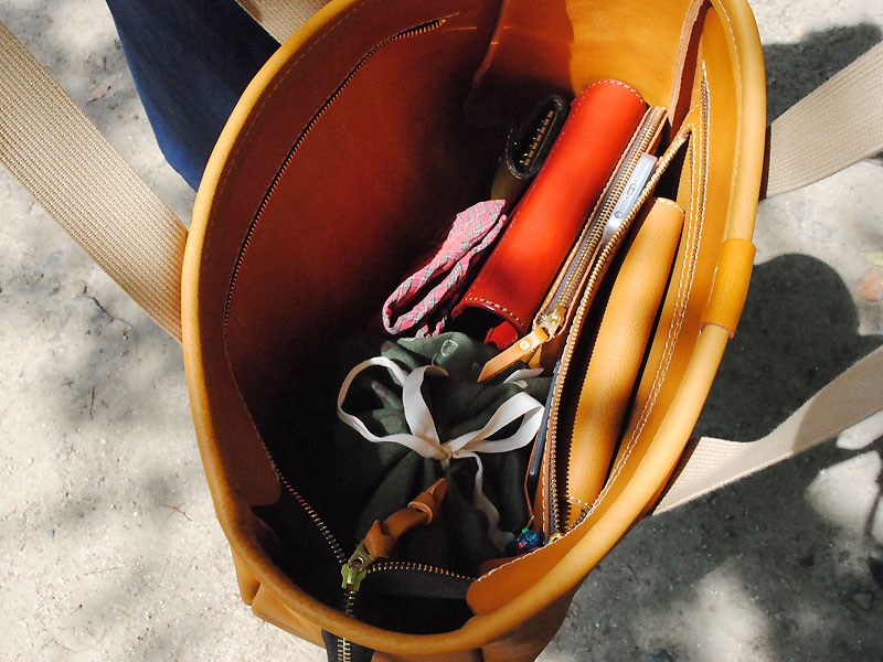 お弁当、バイブル手帳、ポーチ、キーケース、お財布、携帯と入れています。