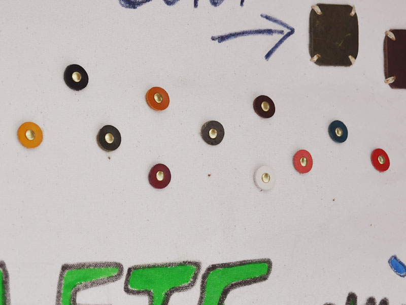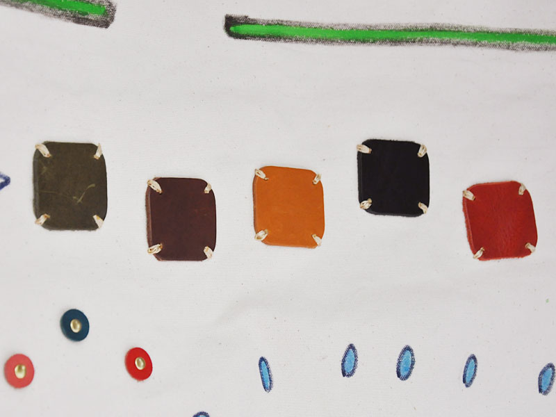 サイドの紐を留める革パーツの色も選べます!