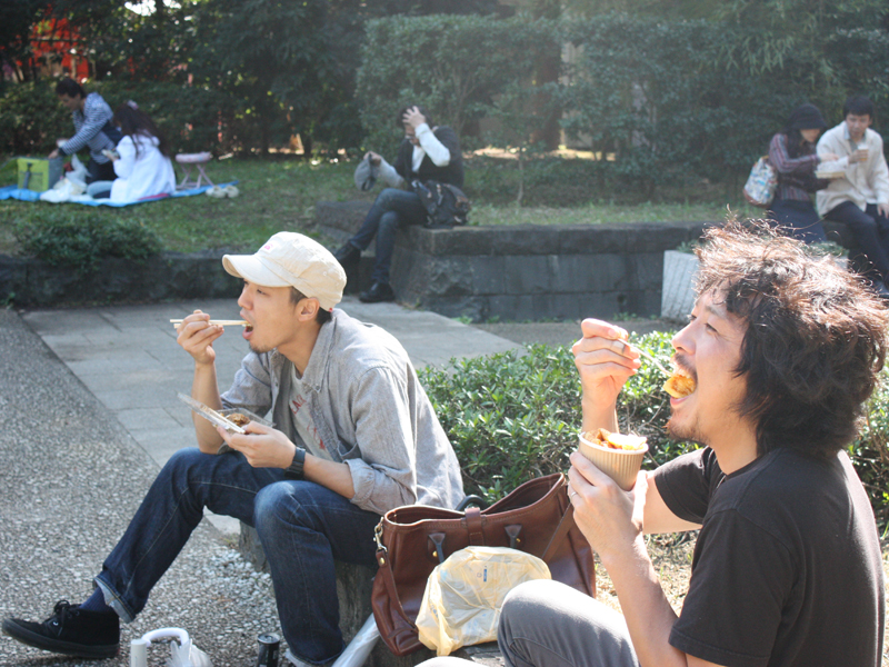 演奏を見ながら、美味しそうにお昼をほおばる清水&庄子(笑)
