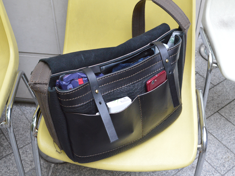 個人的に綿の素材も好きなので、ショルダーは綿テープに。