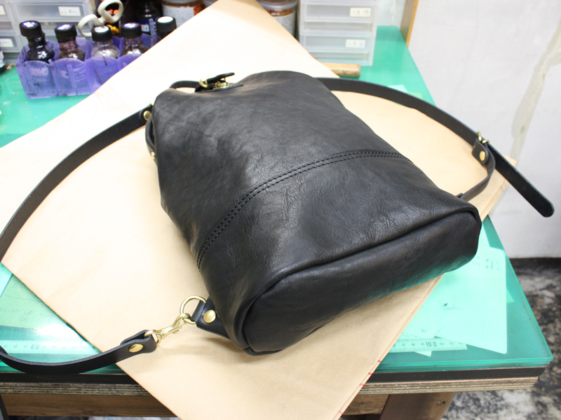 小ぶりなこのポーチは奥さんへの贈り物だそうですが、出来上がったサンプルを手にボソッと一言