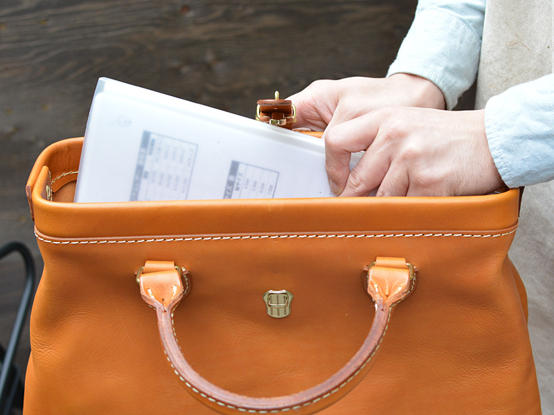 こちらのクラモダバッグ、小振りに見えますがA4ファイルがちゃんと収まります。