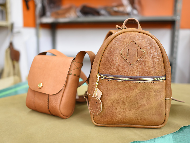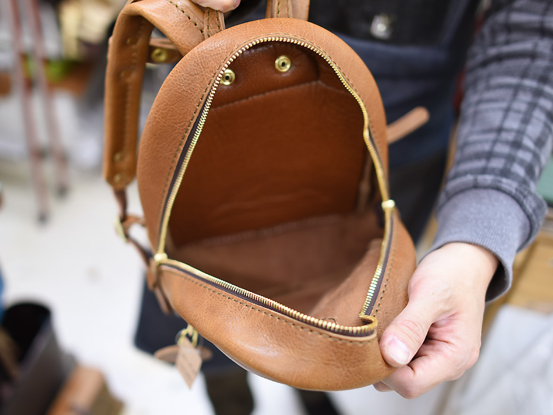 ※先の子どもポシェットとこちらのリュックはサンプルの革を使用しているので、