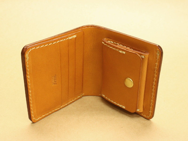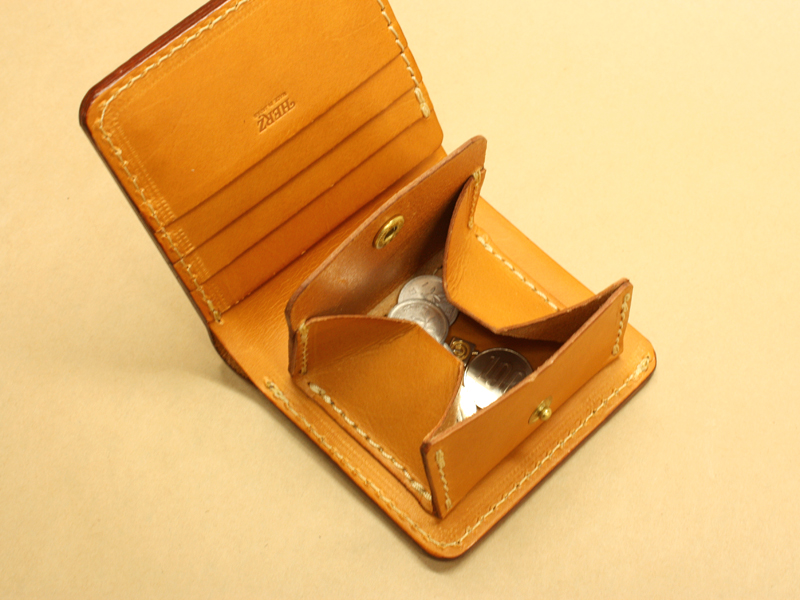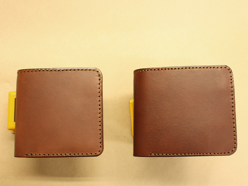 右は定番商品の二つ折り財布WS-5、比べると大きさの違いが解りますね。