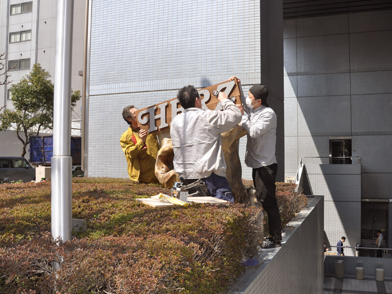 創業者の近藤が出張して、店先に革看板を設置していましたが、