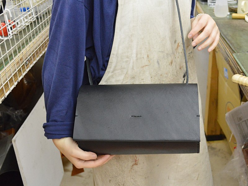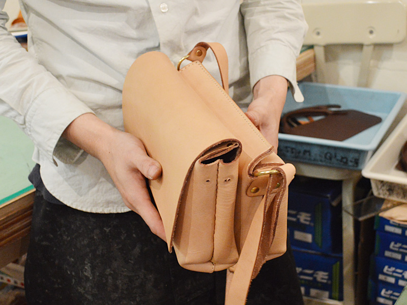 作り手:まみは被せのステッチが印象的なシンプルなショルダーバッグ。