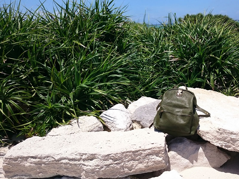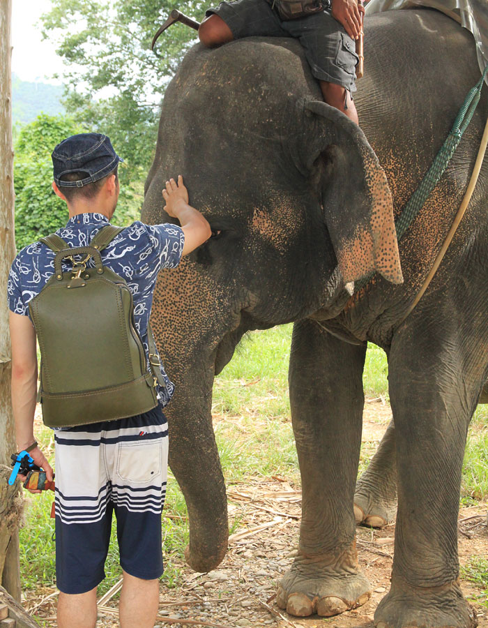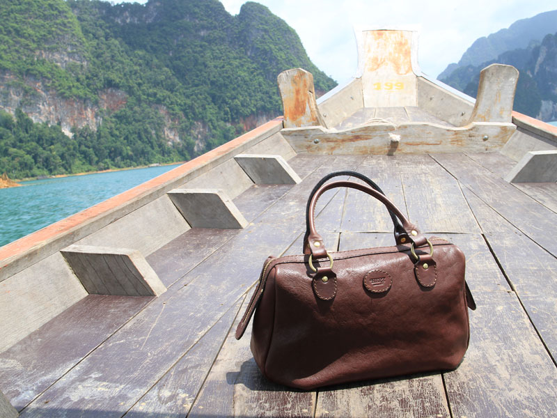 「非日常的な空間にHERZの鞄がある所が旅ならでは。