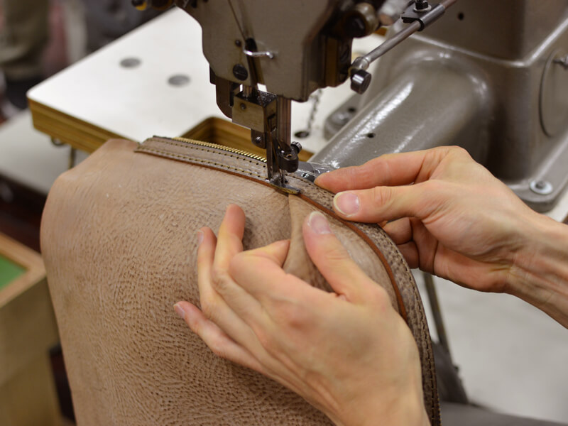 この、折り込んだ革の部分が自然な曲線になるよう、とても意識が集中しているようでした。