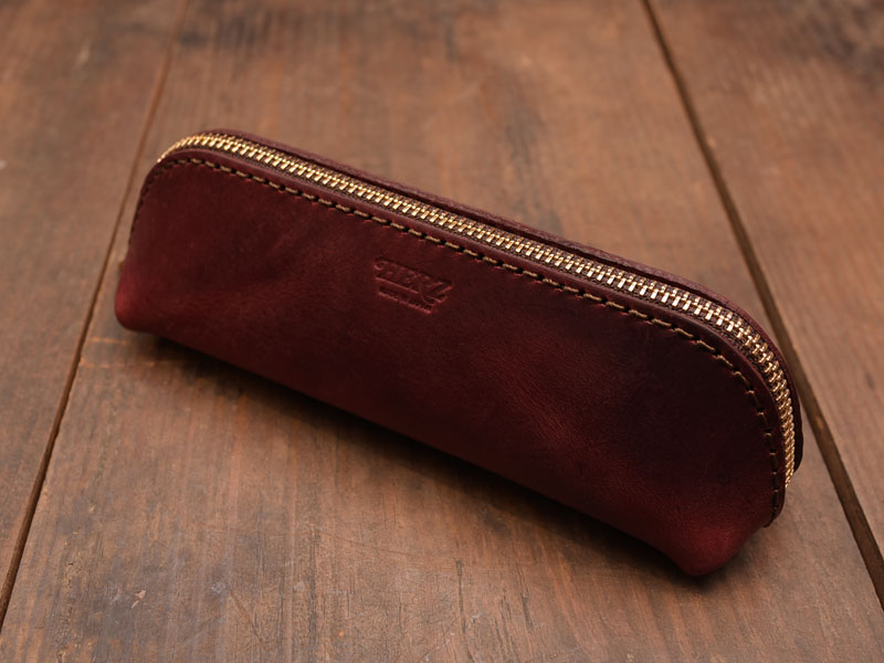 三角型ペンケース(KP-26)をワインレッドで作ってみました。