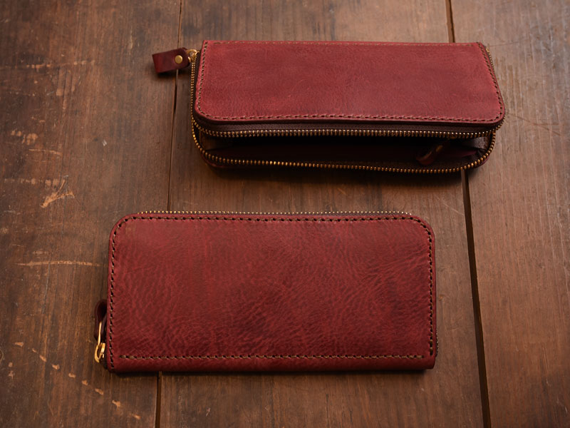 ワインレッドのファスナー長財布