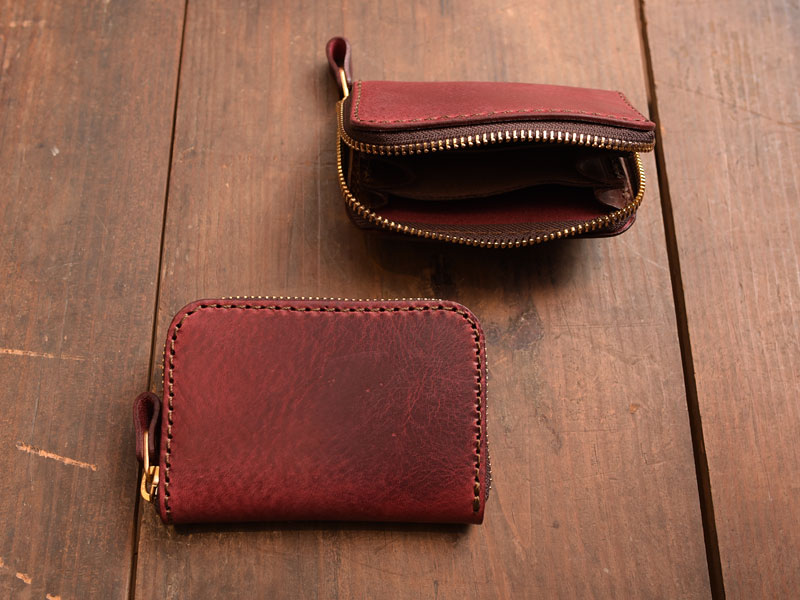 ワインレッドの小型財布