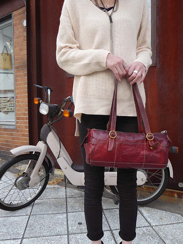 まずは、何とも素敵な深~い赤に育ったつぎはぎミニドラムバッグ(Q-11)。