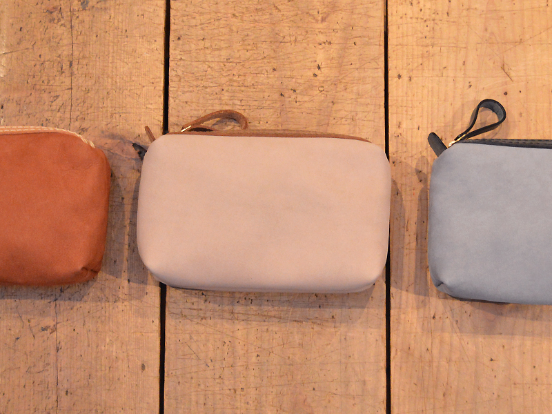 色やサイズがバラバラなファスナーポーチたちです。