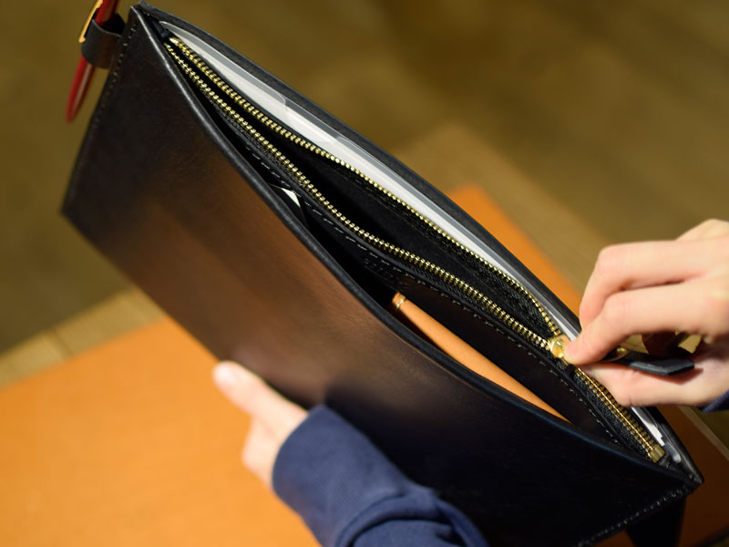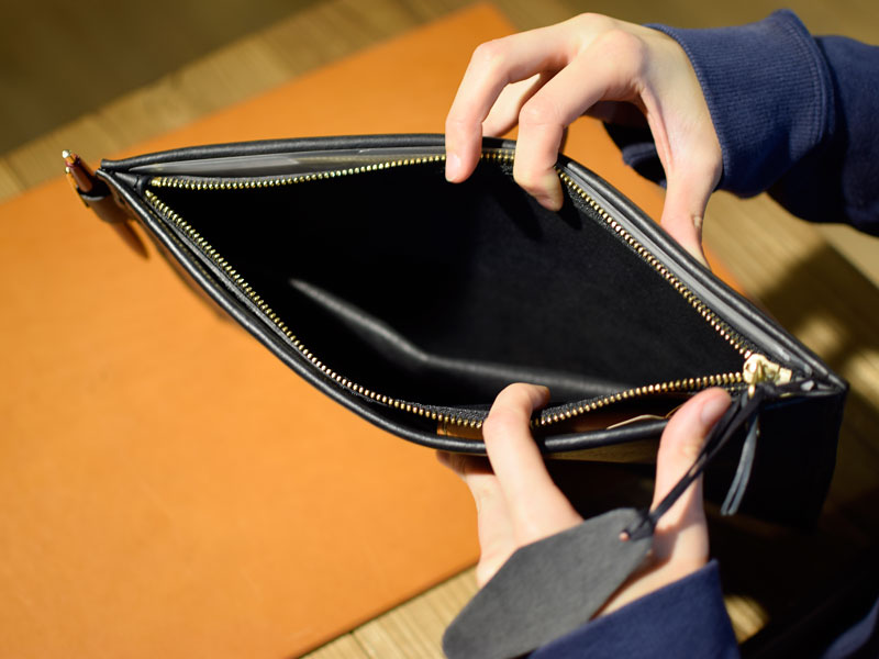 作り手:向(ムカイ)によるクラッチバッグにもなるインナーバッグ。