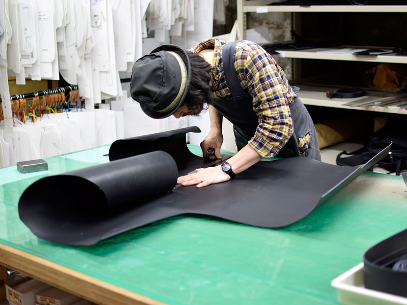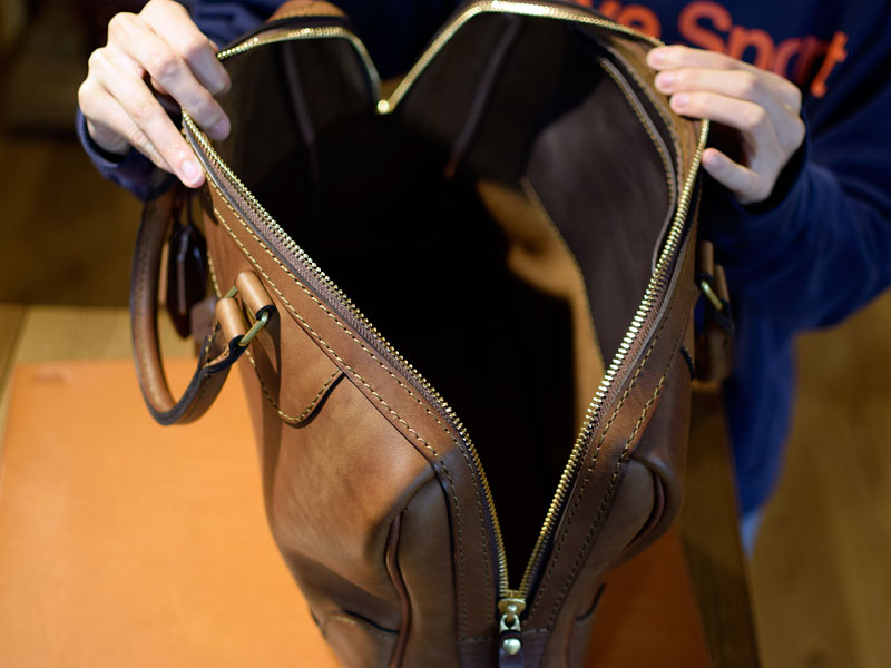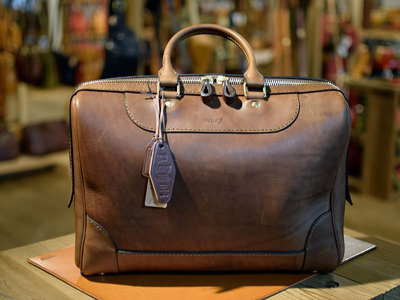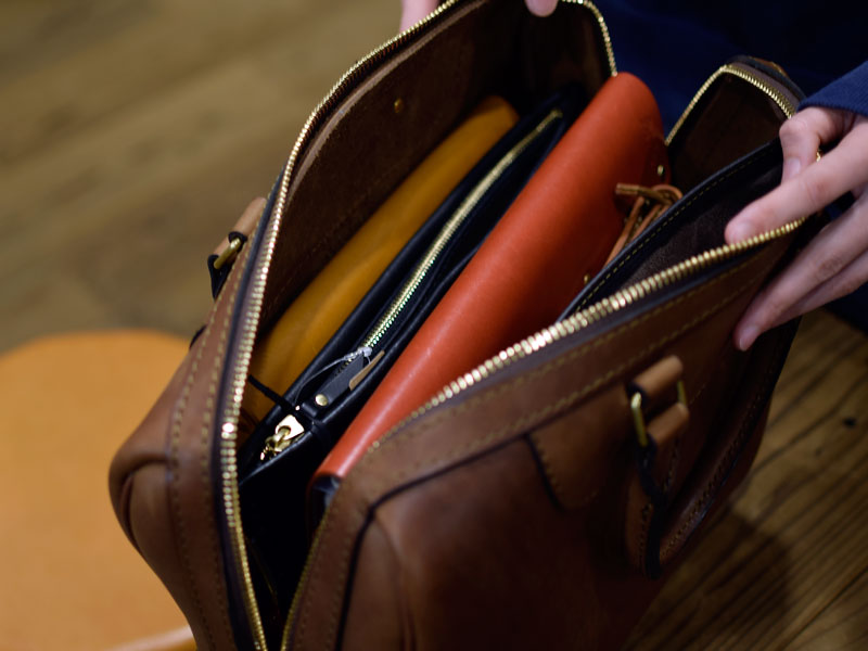こちらも作り手:袴田による二本手ビジネスバッグ。