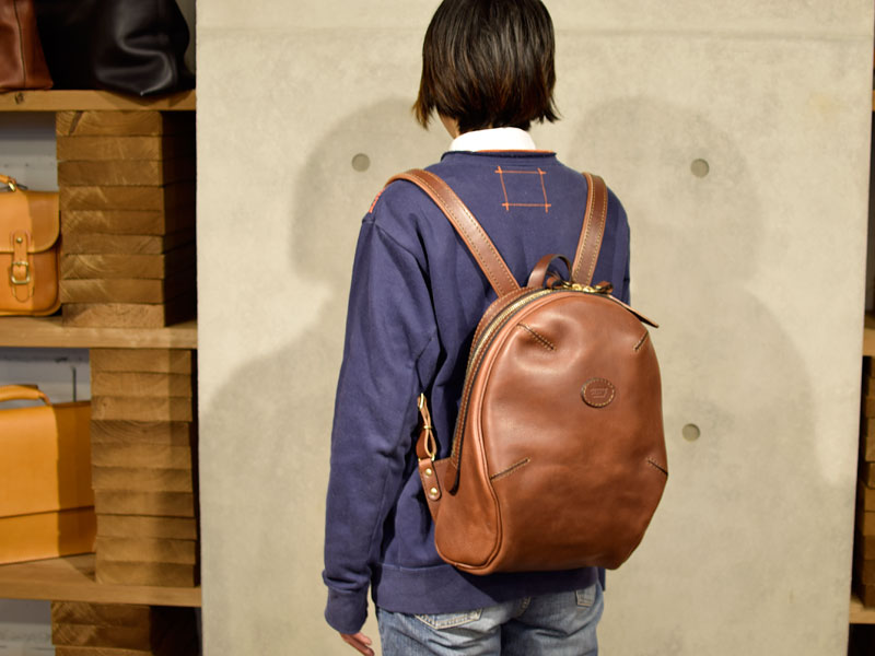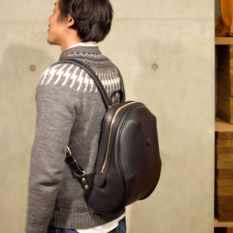 作り手:袴田による丸いフォルムが可愛いリュック。