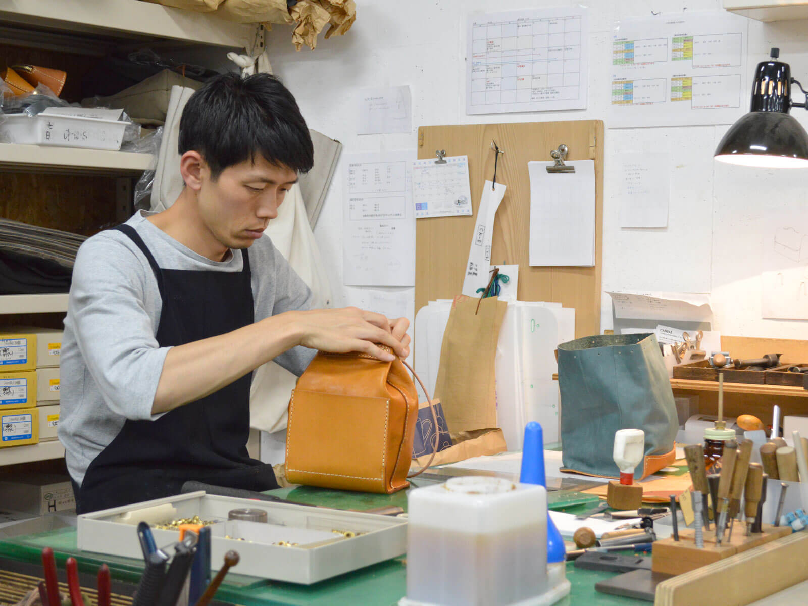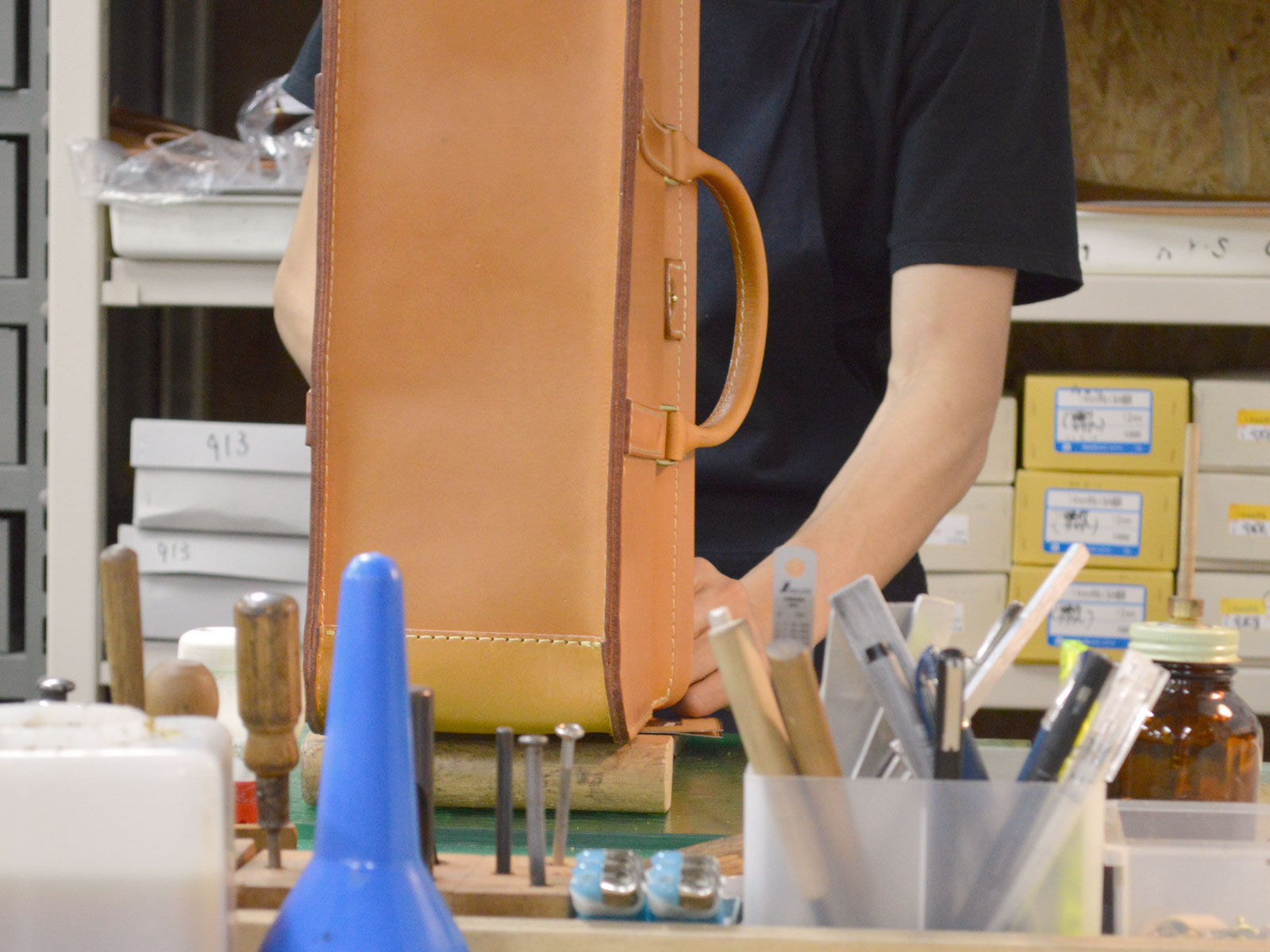 久しぶりのブログを書くことになりました、中村です。 よろしくお願いします。 工房では毎日、カバンや小物づくりに励んでいます。 大きめのカバンから、手のひらサイズの小物まで、作るものは様々です。 形になっていく過程はおもし …