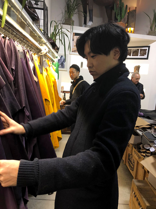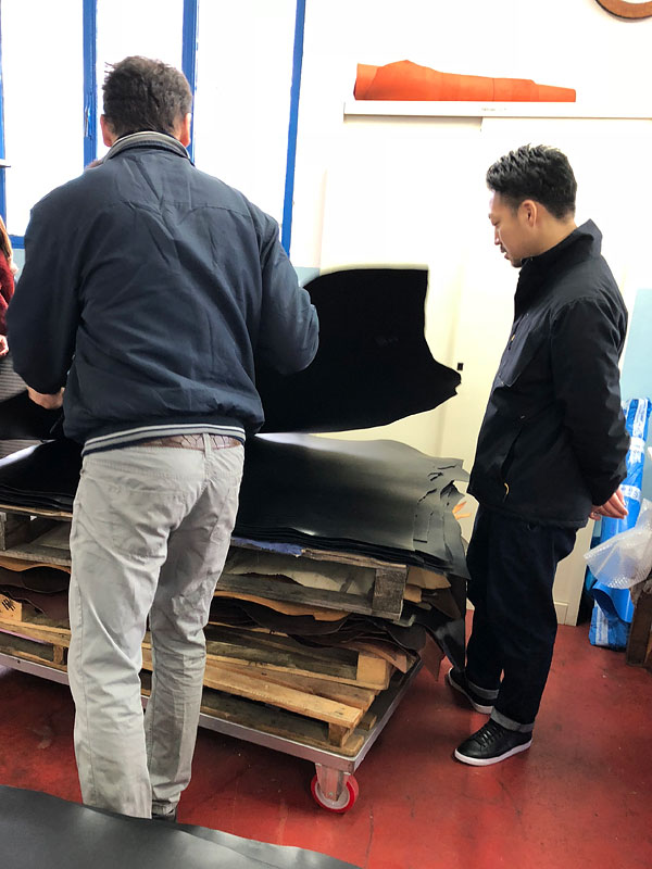 企画などで使う革も現地で見て選びます