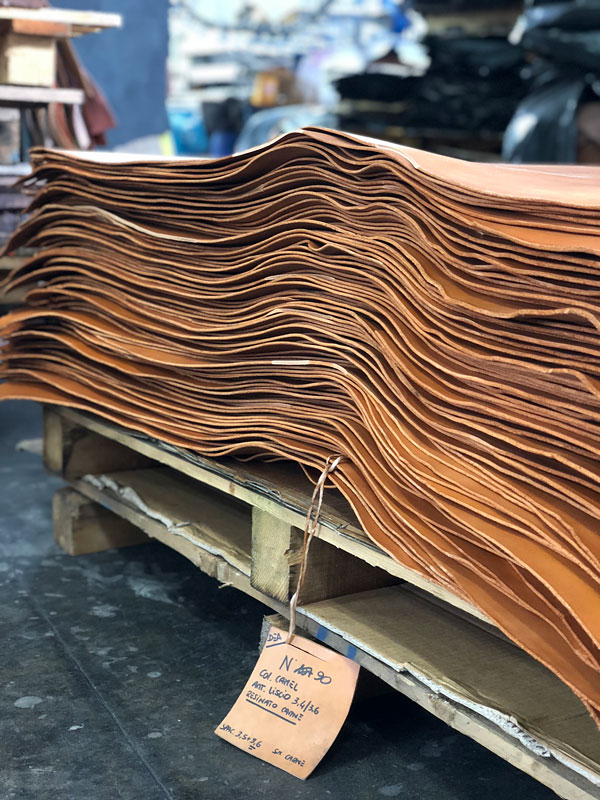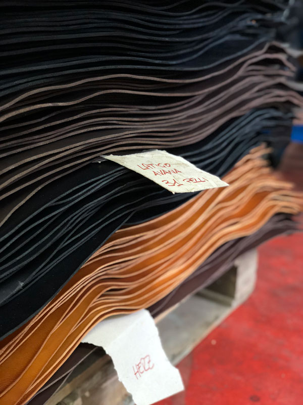 HERZのオリジナルレザーは、年数回に分けてイタリアのタンナーさんに作ってもらっているのですが、品質向上をはかるため、発注した革が出来上がる度、色味や質感などをチェックするための検品に向かいます。