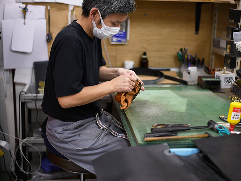 時には柔らかく、時には硬い革もどの様に力を加え、扱えばいいか、手の感覚が覚えている。