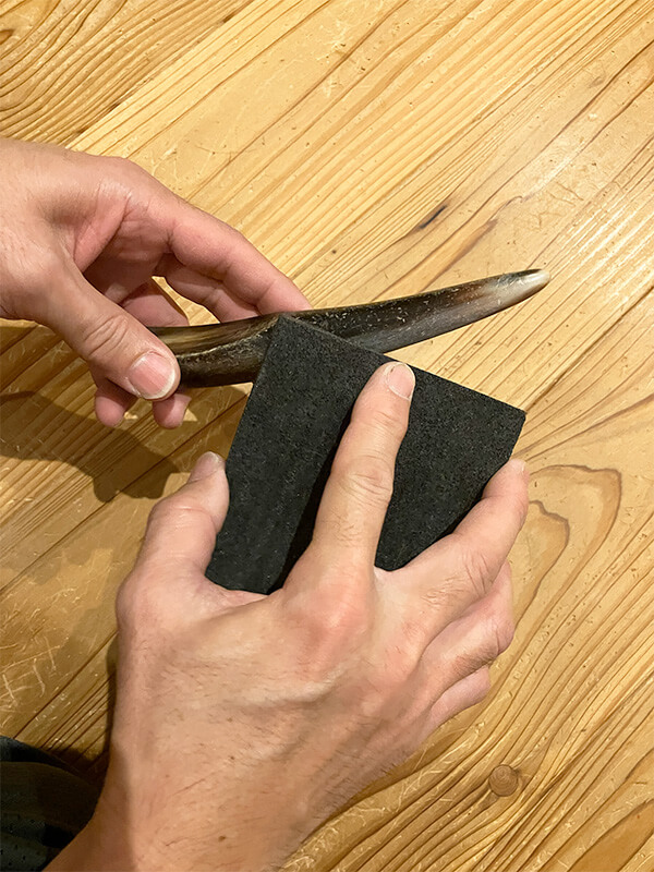 正式な名前はカッサ棒と言うらしく、本来は腕や足などのマッサージに使うものらしい。私はこの棒を鞄や小物の形出しに使っています。